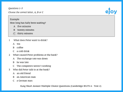 These types of questions are added to assess the candidates’ listening skills for detail and whether they can understand the information provided in a conversation related to a regular topic, like identifying various types of schools or colleges. It also assesses the individual’s ability to follow a conversation between two people and is used to assess relationships’ ability and interrelation between facts in the listening text.