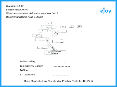 This kind of question aims at testing the listening and imagination skills on the map of a particular place. Therefore, the ability to obtain spatial language is of utmost importance for you to complete this task.